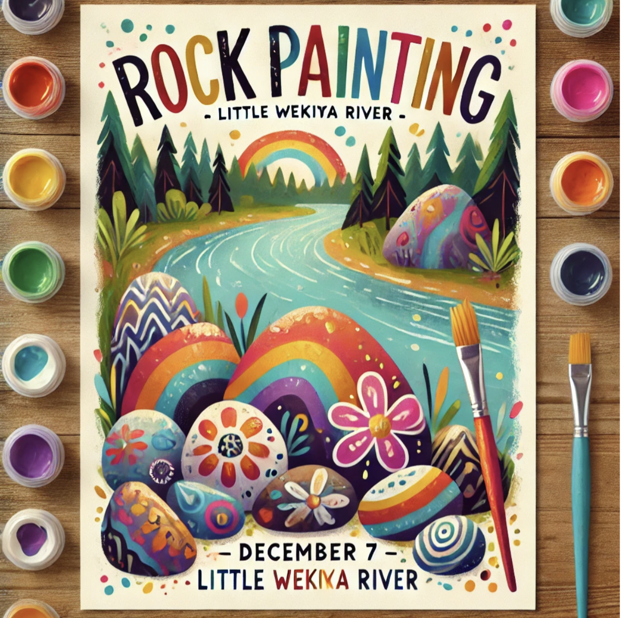 Join us, December 7th , for a relaxing and creative morning by the water! Unleash your artistic side and paint beautiful rocks to take home or share. This family-friendly event is perfect for all ages—bring your friends and enjoy some artistic fun right next to the beautiful Little Wekiva River.